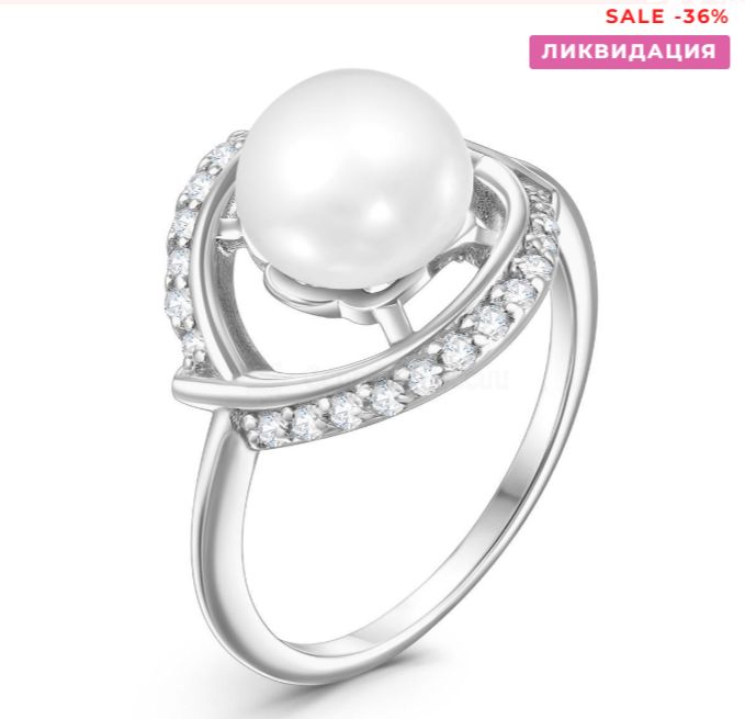 Кольцо из серебра с жемчугом и фианитами родированное 925 пробы к799-жемчуг