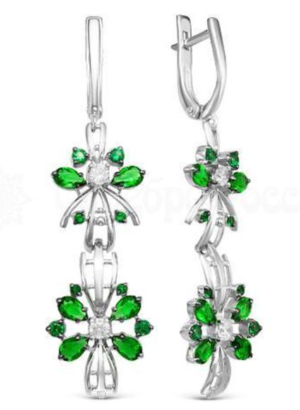 Серьги из серебра с кварцем изумруд и фианитами родированные 925 пробы 2-022р133