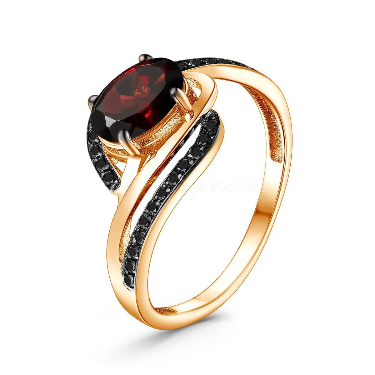 Кольцо из золочёного серебра с натуральным гранатом, фианитами и родированием 925 пробы 1-436зч404216