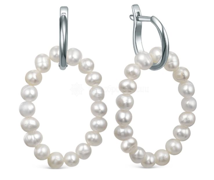 Серьги-трансформеры (2 в 1) из родированного серебра с белым пресноводным жемчугом на резиновой нити 2340055321