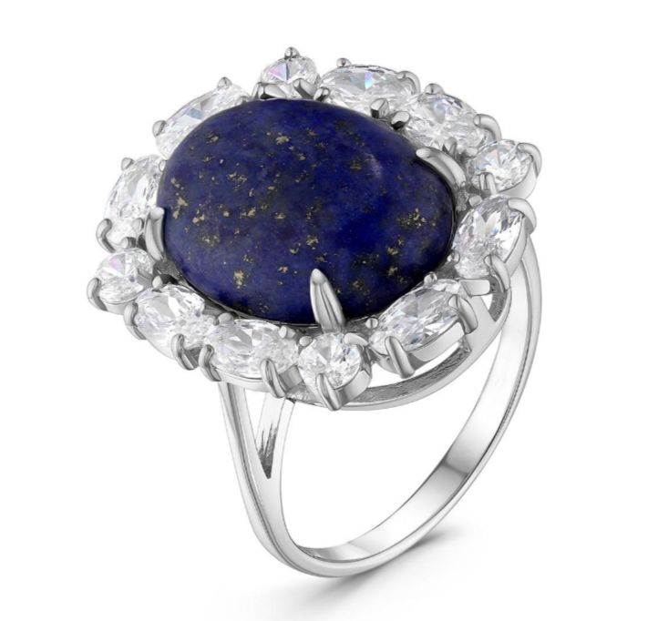 Кольцо из серебра с нат. лазуритом и фианитами родированное 925 пробы К-3423рк467200