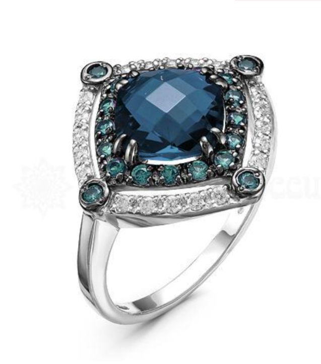 Кольцо из серебра с кварцем гт лондон и фианитами родированное 925 пробы к2 кв.лондон топаз