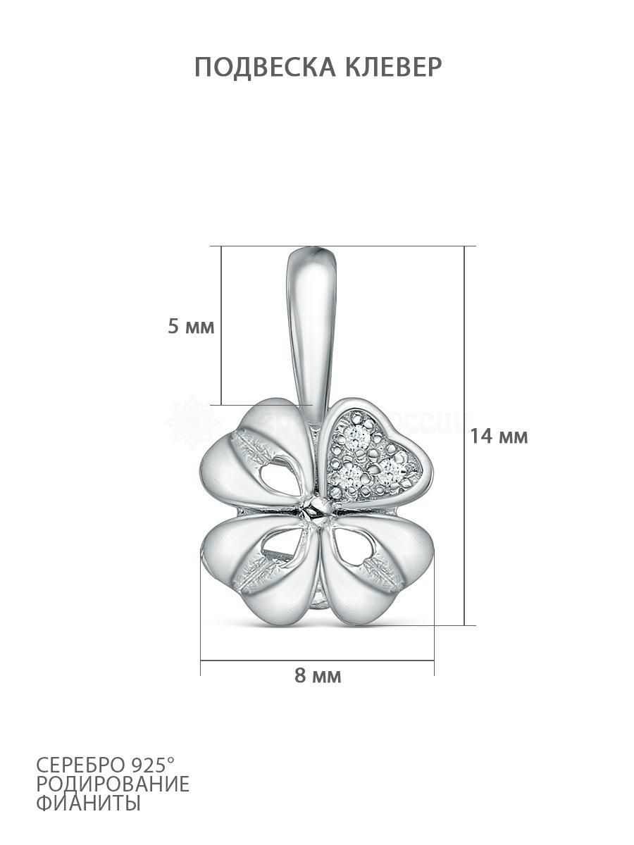 Подвеска из серебра с фианитами родированная - Клевер