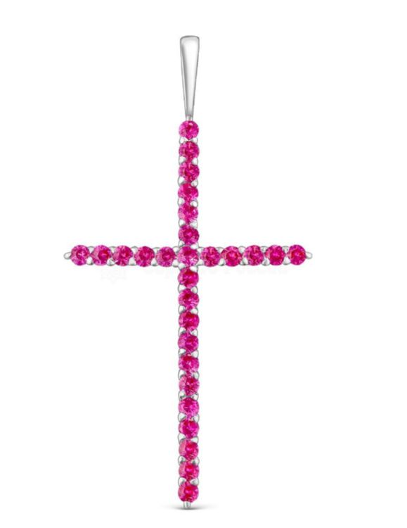 Подвеска-крест из серебра с нат.розовой шпинелью родированная 925 пробы п-035р615