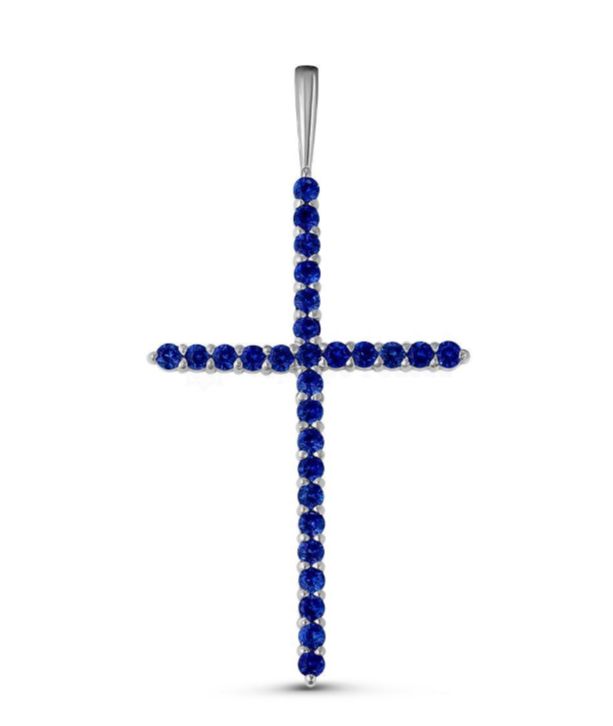 Подвеска-крест из серебра с нат.синей шпинелью родированная 925 пробы п-035р608