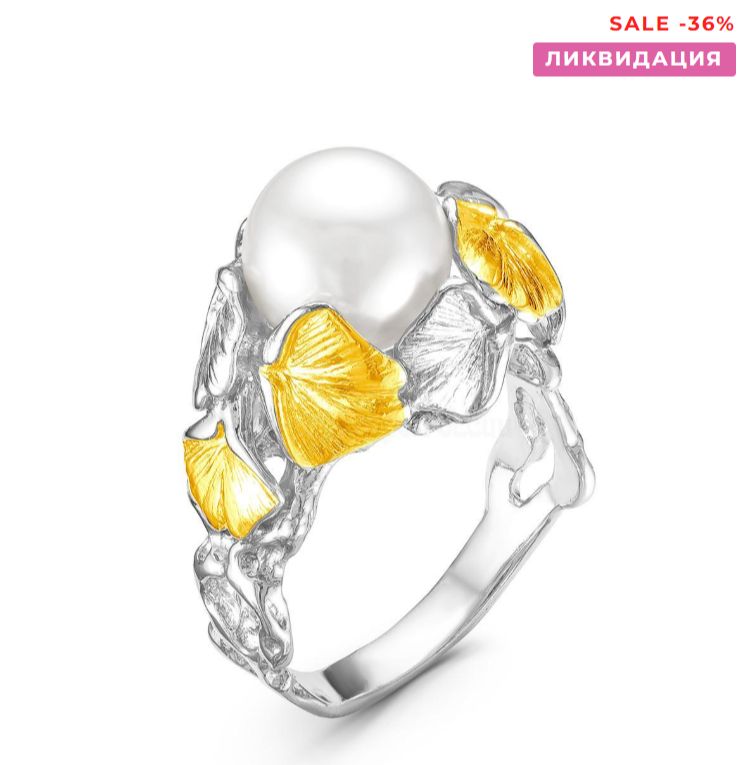 Кольцо из серебра с жемчугом Swarovski, фианитами и золочением родированное 925 пробы К-1391002рз101