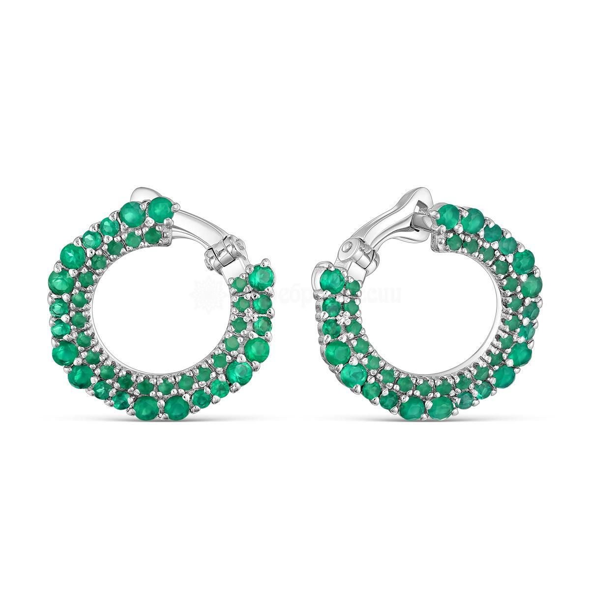 Серьги женские из серебра с натуральным агатом и зелёными фианитами родированные 925 пробы 2-359р409209