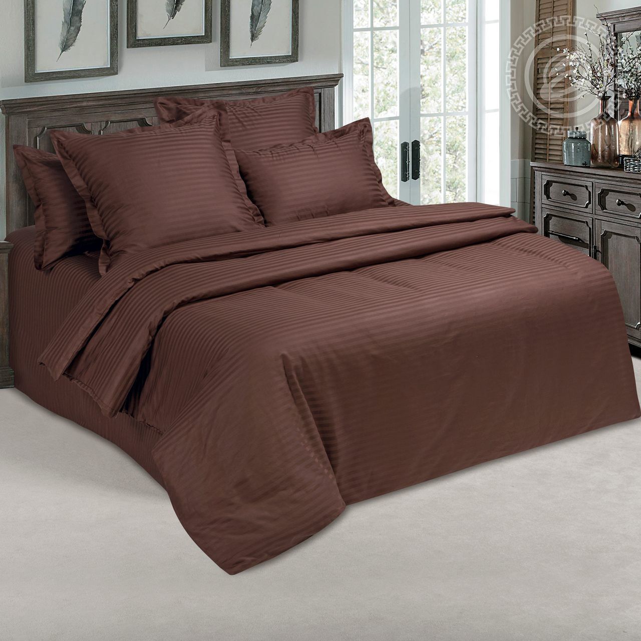 КПБ Шоколад-Страйп - сатин-ПРЕМИУМ- Евро. арт.867/2