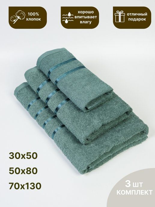 Набор махровых полотенец,3 шт(30х50, 50х80, 70х130) деним*