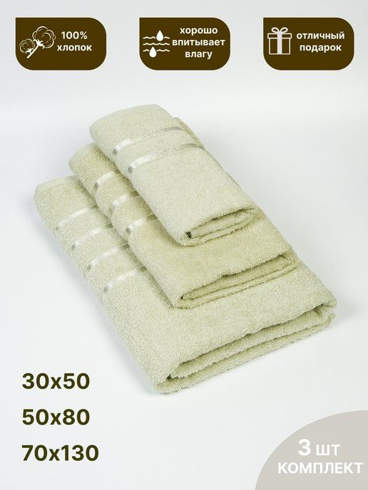 Набор махровых полотенец,3 шт(30х50, 50х80, 70х130) светлый фисташковый*