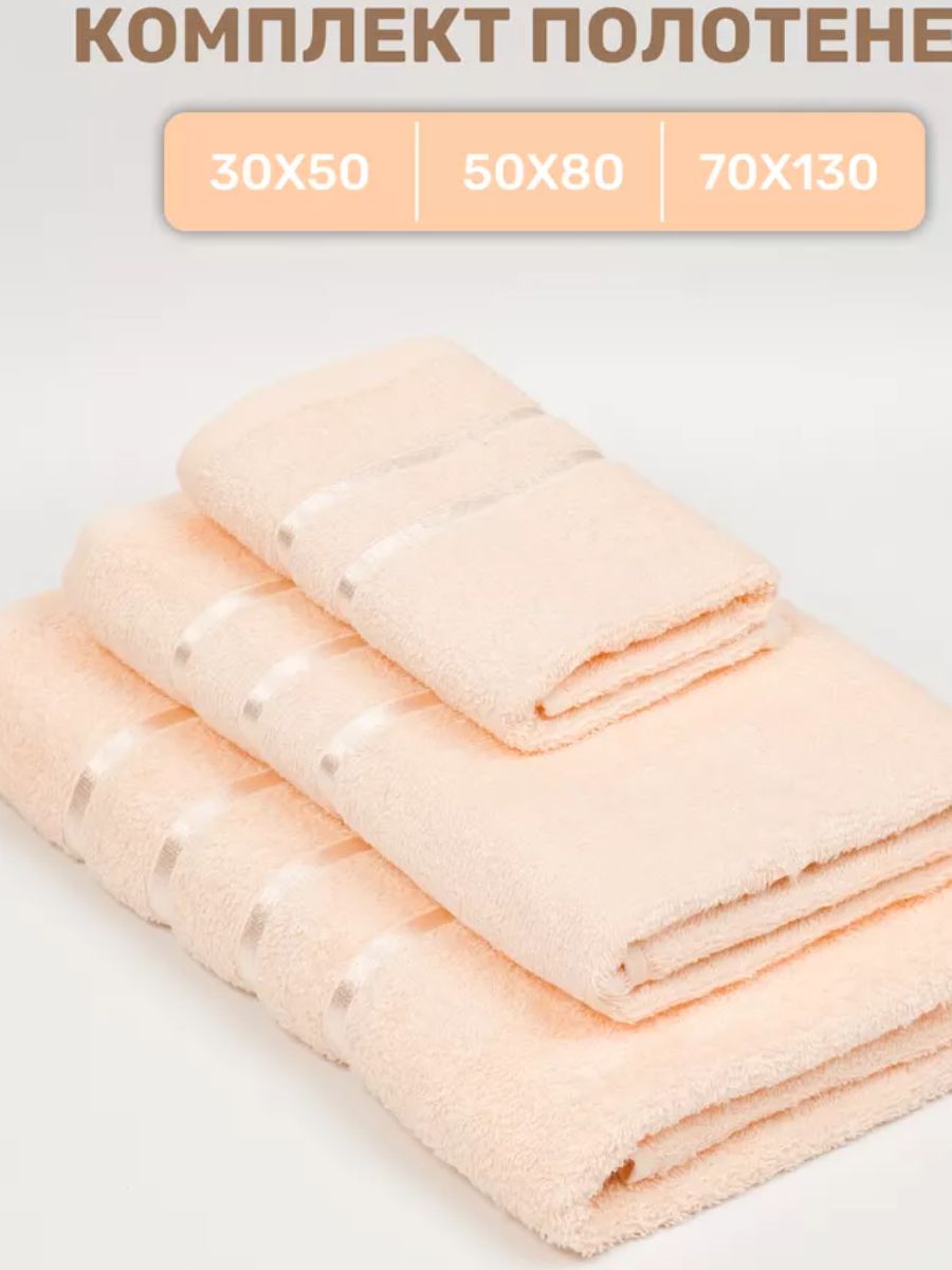 Набор махровых полотенец,3 шт(30х50, 50х80, 70х130) светлый персиковый*