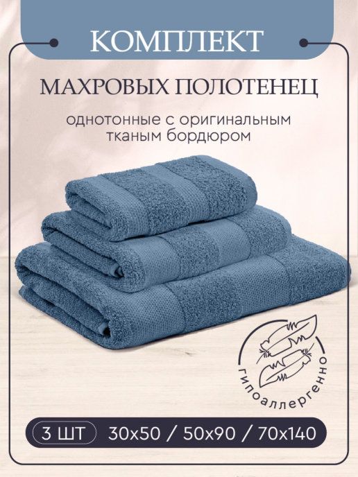Набор махровых полотенец,3 шт(30х50, 50х90, 70х140) деним*